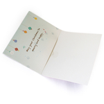 和紙タイプのバースデーカードカード前面に和紙の一言メッセージのアタッチメントが付いています。
