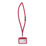 ストラップは長さ調整できるスライド調節機能付き名札本体A7サイズの名刺大の大きさを収納できます。名札ケースは中に入れるものを保護するチェックタイプ