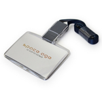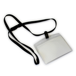 ひもがついて首から下げられる吊り下げ名札です。名刺サイズのカードを入れて使います。イベント等によくご使用されます。