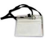 吊り下げヒモと携帯マツバ付きの名札では驚きの低価格名札はチャック付きで名刺カード等をしっかり収納。ひっぱると外れる安全装置付きのストラップ(長さ100cm)。