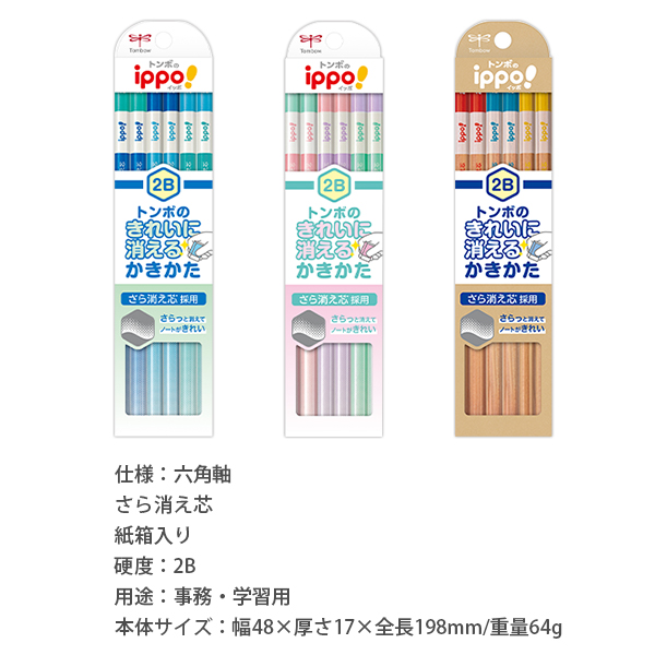 トンボ鉛筆 イッポ きれいに消えるかきかた鉛筆 2B 12本 KB-KSKN01-2B 六角軸 さら消え芯 紙箱入り 消しゴム吸着 さらっときれいに消える鉛筆 M01/W01/N01