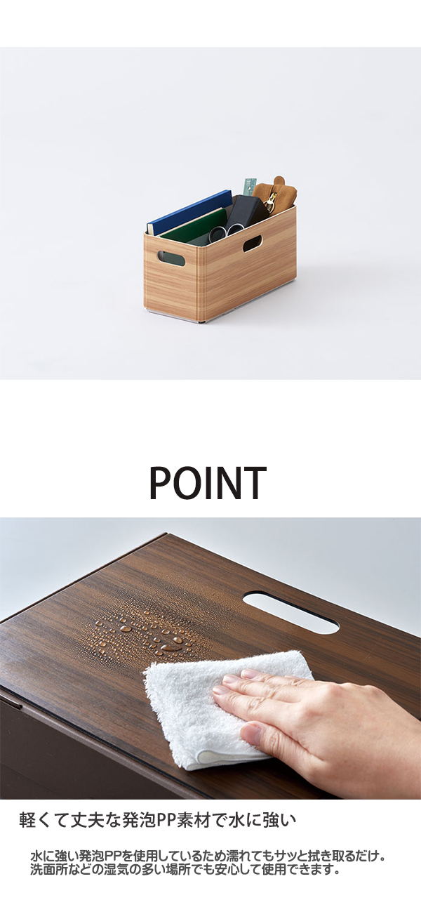 組み立て簡単な暮らしに馴染む木目調の収納ボックスです。