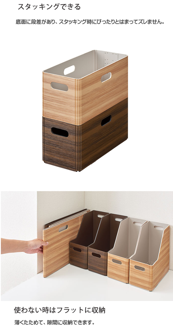 - 軽くて丈夫!ぴったりスタッキングできる木目調の収納ボックス