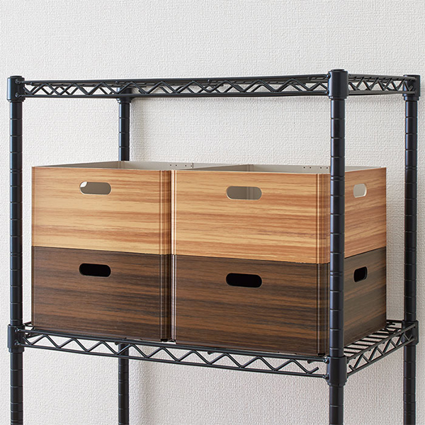 - 軽くて丈夫!ぴったりスタッキングできる木目調の収納ボックス