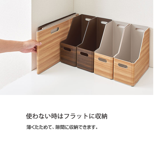 組み立て簡単な暮らしに馴染む木目調の収納ボックスです。