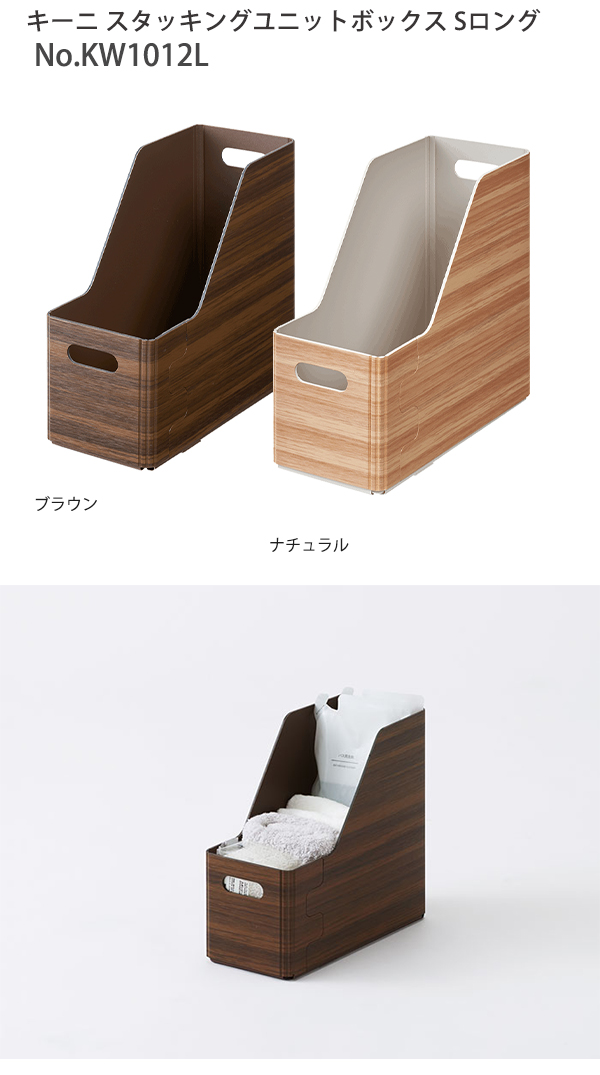 キングジム 木目調収納ボックス キーニ KIINI スタッキング ユニットボックス Sロング kw1012L ナチュラル / ブラウン 組み立て簡単 発泡PP 家庭 暮らしになじむ