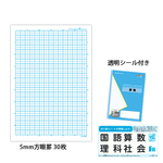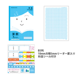 算数 5mm方眼罫 10mm実線入り 15×22。糸綴じ30枚の科目名入りスクールライン。