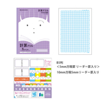 計算ドリル 5mm方眼罫 10mm実線入り 15×22。糸綴じ30枚の科目名入りスクールライン。