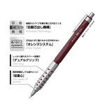 定規をあてやすい4mmのロング芯パイプ手のすべりを抑えるグリップのローレット加工ボディエンドには芯硬度を視認できる表示窓が付いています。
