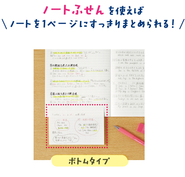 参考書や問題集に書き足したい時にも使えるノートふせんです。