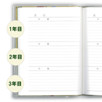 ・1ページに同じ日にちで3年分書ける日記帳です。・1年前の記録をふり返りながら書くことができます。・付録ページにアドレスページ・アニバーサリーページ・パーソナルメモページがあります。