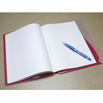 表も裏も無地のクラフト表紙です。自由帳やスクラップ帳など自由に使える白無地ノート。