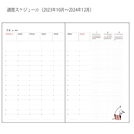 スヌーピーと共に、2023年10月から2024年12月までのスケジュールをカラフルに管理。週間バーチカルの方眼メモで自由度満点のスケジューリングを楽しもう!