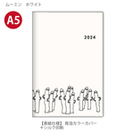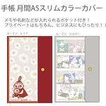 スタイリッシュなムーミンデザインで、便利なクリアポケットや六曜表示付きのA5スリムカバー手帳。ビジネスとプライベートに最適。