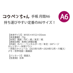 可愛いコウペンちゃんA6手帳。高品質エンボス表紙、月間スケジュールとメモコンテンツが魅力。持ち運びに最適なサイズです。