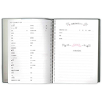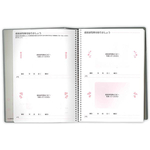 閏年分含め366日分の日記ページがあります。日付は記入してあり曜日を書き込んで使用します。アピカ中性紙(1000年ペーパー)を使用しています。