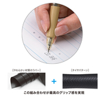 ・弾力のあるラバーグリップが指にフィット し、滑りにくく、長時間の筆記にも疲れを感じ させません。・透明軸なのでインク残量が見え、無駄な く使え、インクの交換時期が分かります。