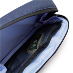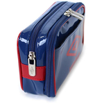アンブロ2段ペンポーチ(NVY), H13018はアンブロマークの引き手のついたUMBROペンケース。手前側のポケットにはペン挿しベルトが装備されています。