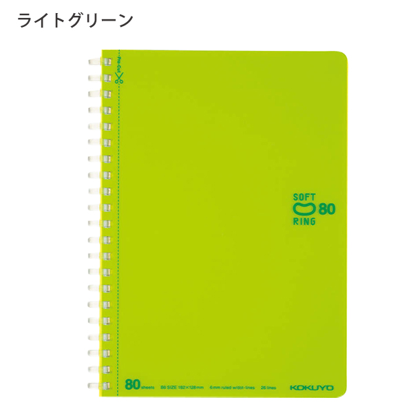 コクヨ ソフトリングノート ドット罫 ドット入り罫線 カットオフ 80枚 B6 ス-SV348BL ライトブルーLB/ライトグリーンLG/ライトピンクLP/オレンジYR カラフル ドット入り罫線