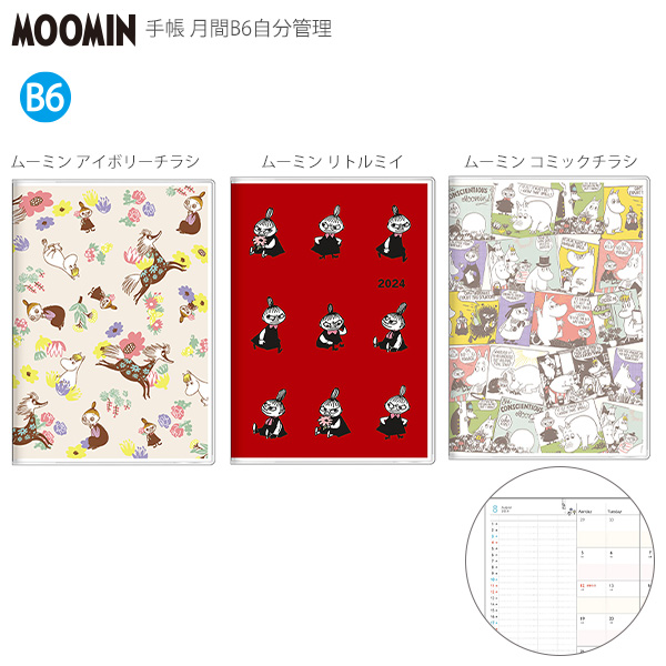 サンスター 手帳月間B6自分管理 ムーミン アイボリーチラシ S2956845 / リトルミイ S2956853 / コミックチラシ S2956861 月間スケジュール(2023年10月~2024年12月・六曜入)