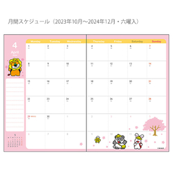 サンスター 手帳月間B6 たべっ子どうぶつ おかし S2957230 / たべっ子どうぶつ ちらし S2957248 月間スケジュール(2023年10月~2024年12月・六曜入)