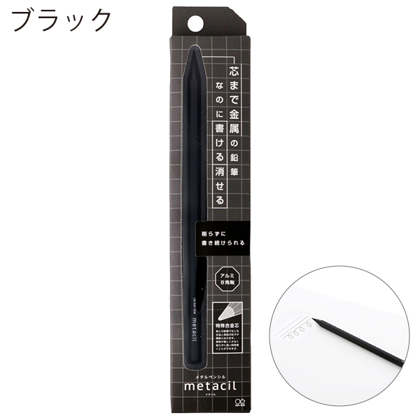 - メタルペンシルは削ることなく長時間書き続けられる鉛筆です。