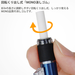 回転くり出し式の「MONO消しゴム」を搭載したシャープペンシル