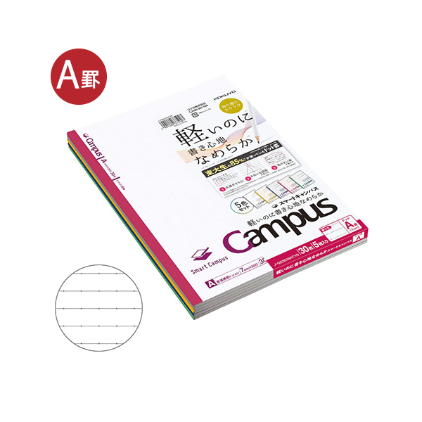 コクヨ キャンパスノート スマートキャンパス ドット入り罫線 5色パック セミB5 普通横罫 ドット入り A罫 7mm×30行 無線とじ ノ-GS3CWAT×5