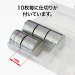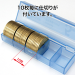 10枚ごとの仕切り付で、コインの枚数計算が簡単にできます。すべてピッチリ入れて33300円になります。