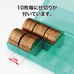 コインケース M-10Wは抗菌加工10円用100枚収納10枚毎に仕切りが付いています。