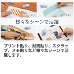 貼った瞬間から強力接着するパワーテープ搭載。封筒貼りやラッピング、スクラップや写真貼りなど、すぐにしっかり貼りたいときに最適です。