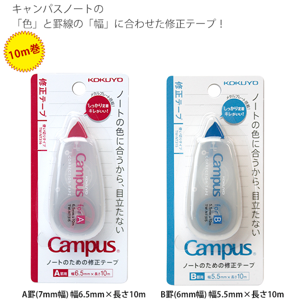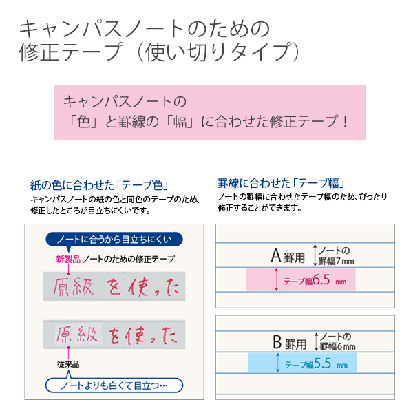 キャンパス ノート(B罫)のための使い切り修正テープです。