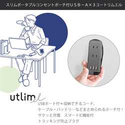ソニック スリム ポータブルコンセント ポーチ付 USB-A グレー UL-6345-GL/バイオレット UL-6345-V/グリーン UL-6345-G