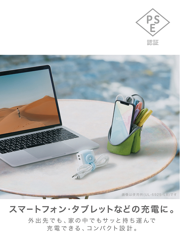 外出先でも、家の中でも、サッと持ち運んで充電できる!コンパクト設計。