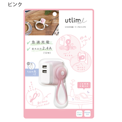 ソニック USB充電器 USB-A×2 ケーブルリング付 UL-6925 ライトブルー LB/ベージュBE/ピンクP