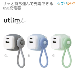 ソニック USB充電器 USB-A&C ケーブルリング付 UL-6943 グレーGL/ブルーB/グリーンG